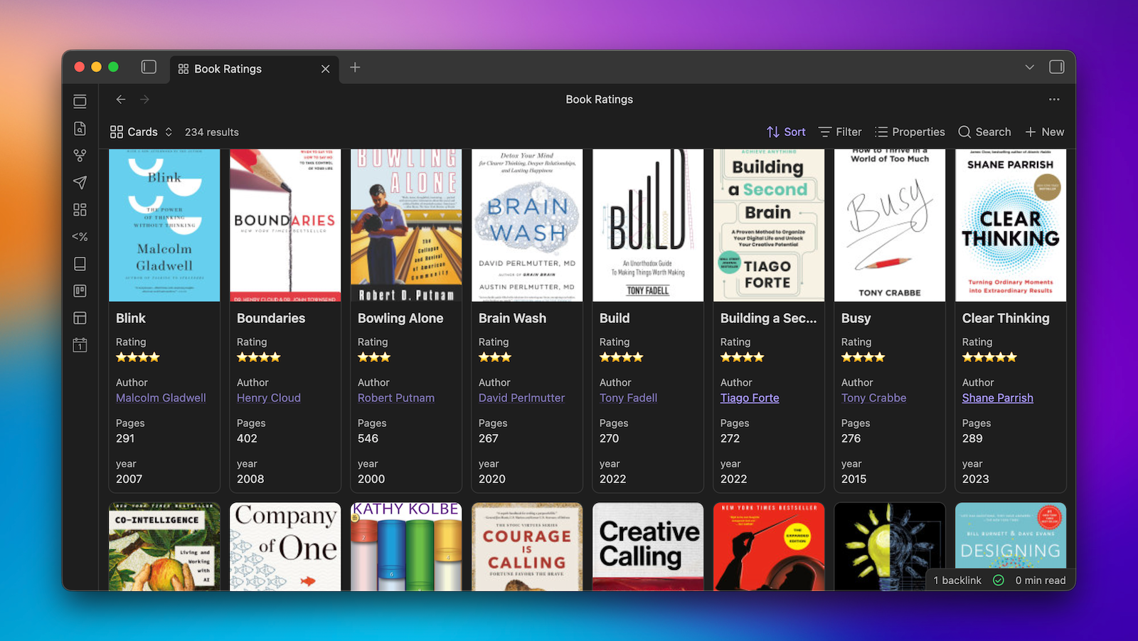 Overall, Bases is the most exciting thing to be added to Obsidian in quite some time, and I can't wait to see how it matures and what workflows it enables.
