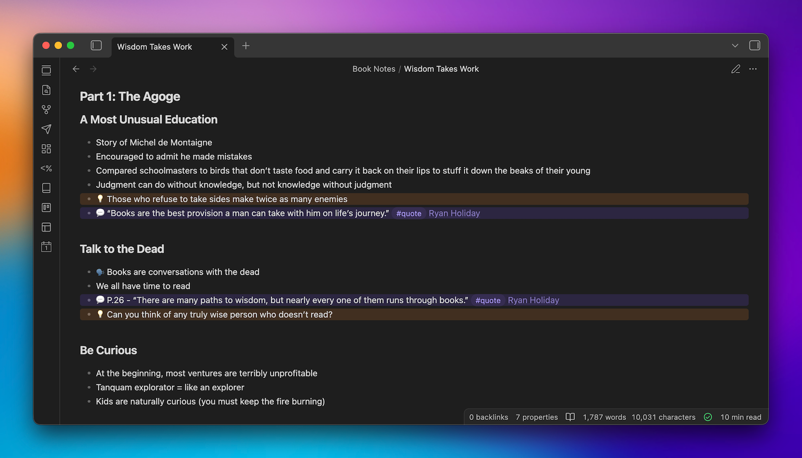 ratingproperty at the top of the note - Interpret my emoji-coding system (i.e. 💡 = inspiration, 🔑 = key argument, etc.)