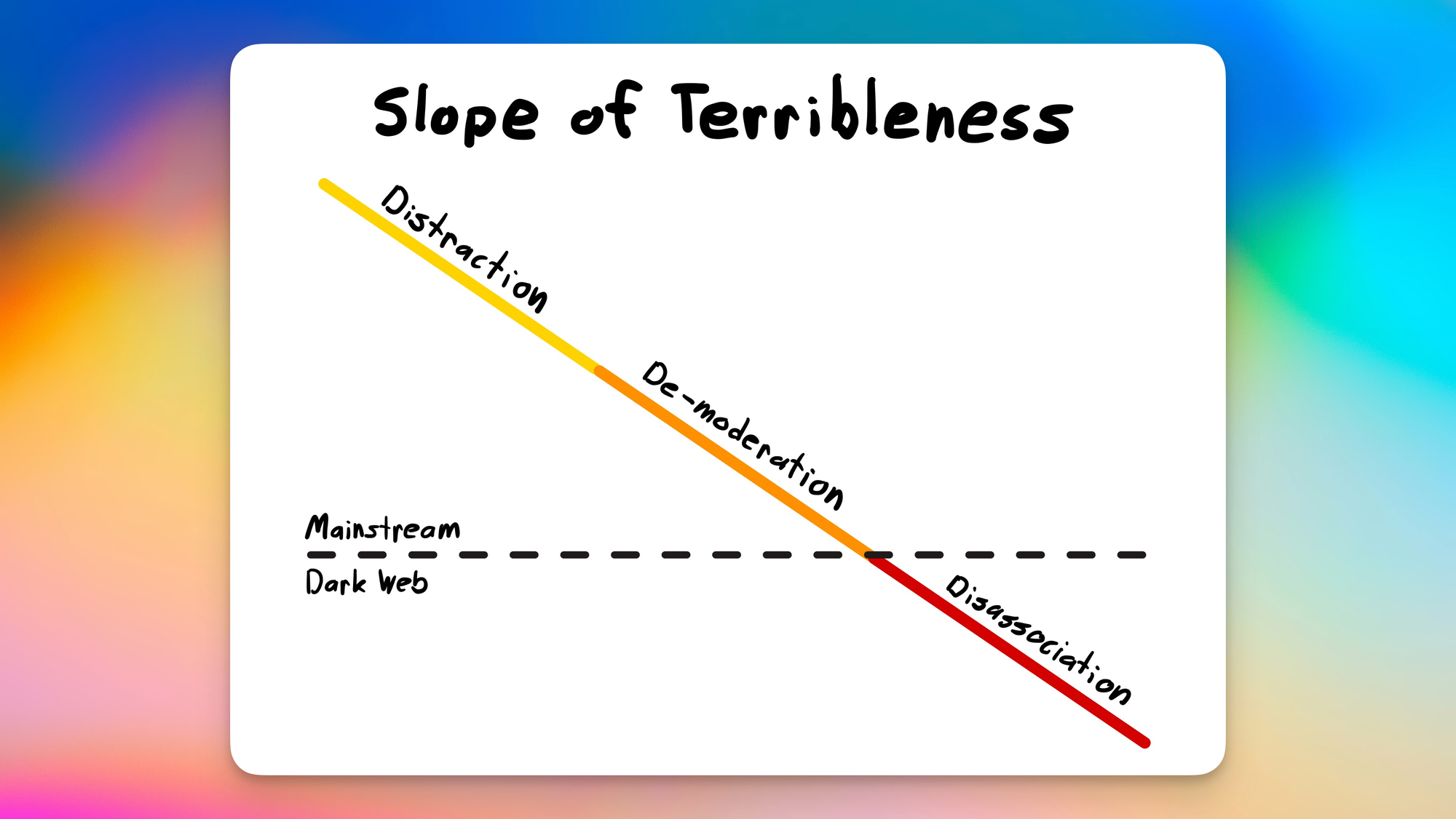 He plots these on a diagram he calls The Slope of Terribleness, which shows how these platforms can lead to some pretty dark places.