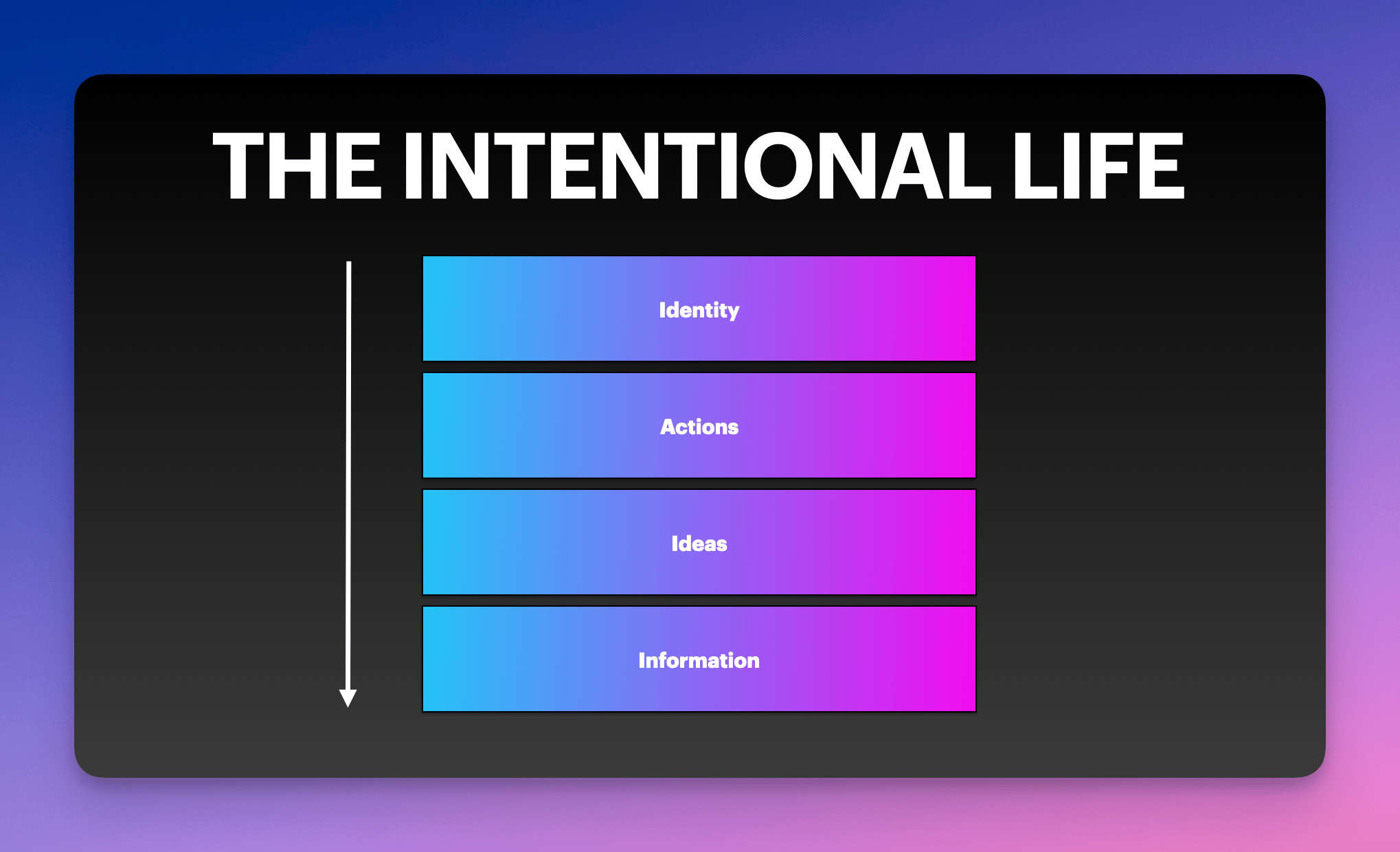 I have a framework I call The PKM Stack, which helps facilitate the flow of information into and out of your PKM system by anchoring it in your Identity (your vision & values). When you get clear on this, it helps you align your Actions, your Ideas, and even acts as a filter for the Information that you consume.