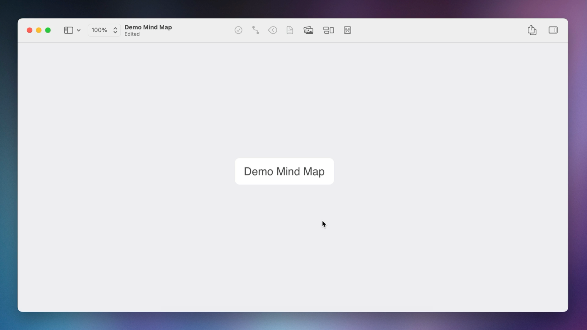 When you create a new mind map in MindNode, it places a main node in the middle and asks you to name it. In this example, let's name our main node "Demo mind map."